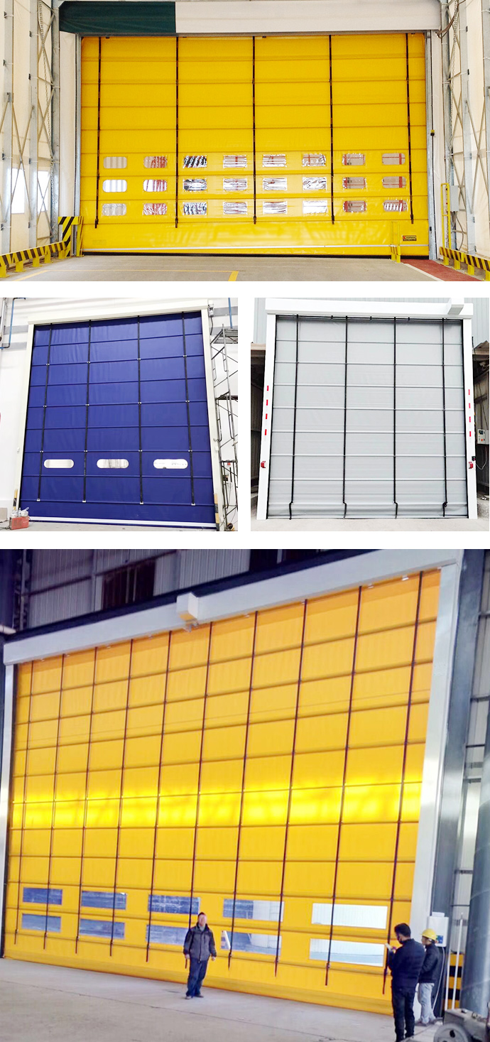 堆積式快速門是快速門當中構(gòu)造很簡單的一種門型,堆積式快速門一般的組成部分是由動力提升機頭、簾布、抗風桿、立柱、伺服電機、控制箱這幾部分組成。簾布的材質(zhì)是由1.2mm的單層pvc簾布制成,中間以抗風桿加固,其運行速度達到0.8m/s,相對來說構(gòu)造簡單,功能上只能起到防風防塵隔離作用。